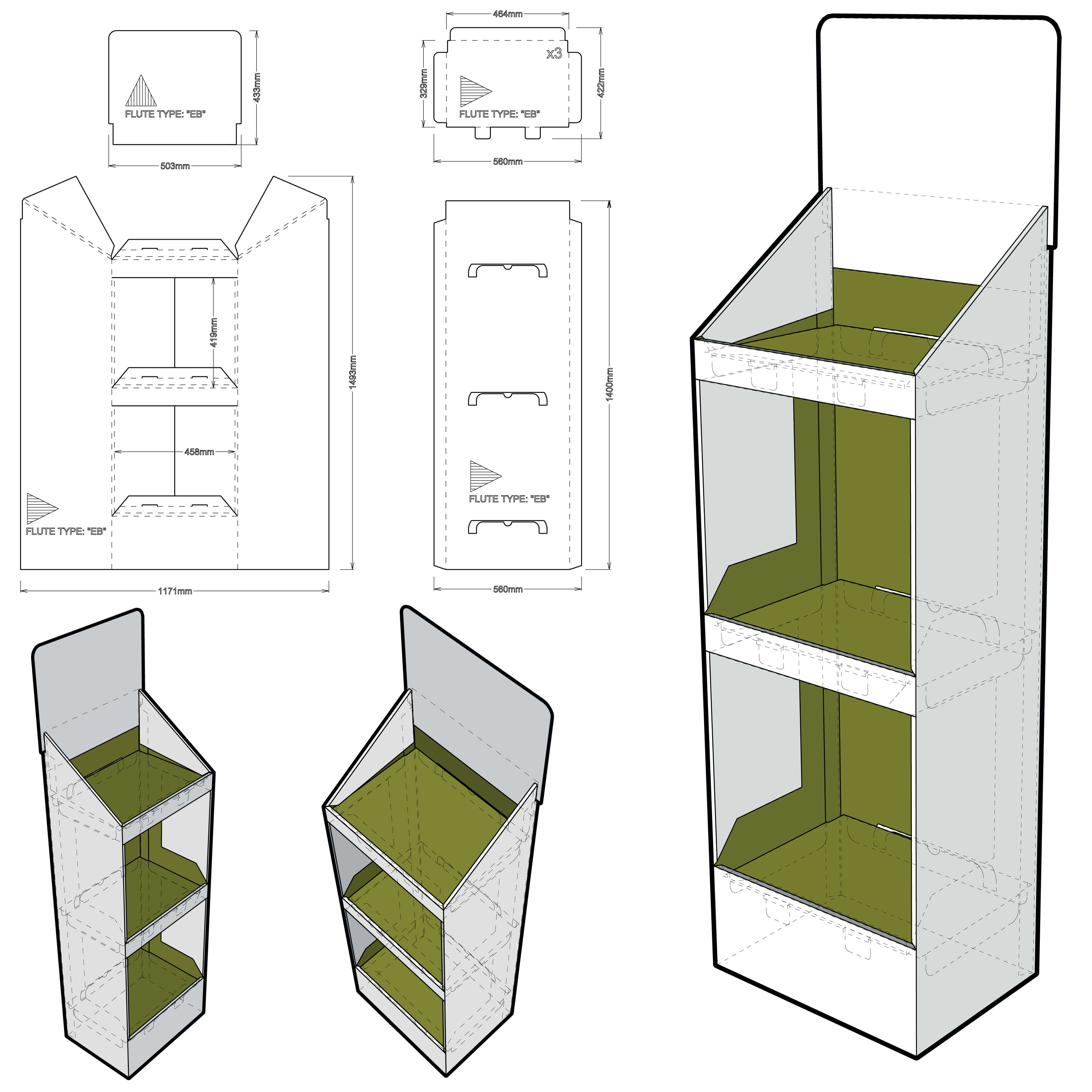 Create a new POP display tray with reduced material consumption and production cost